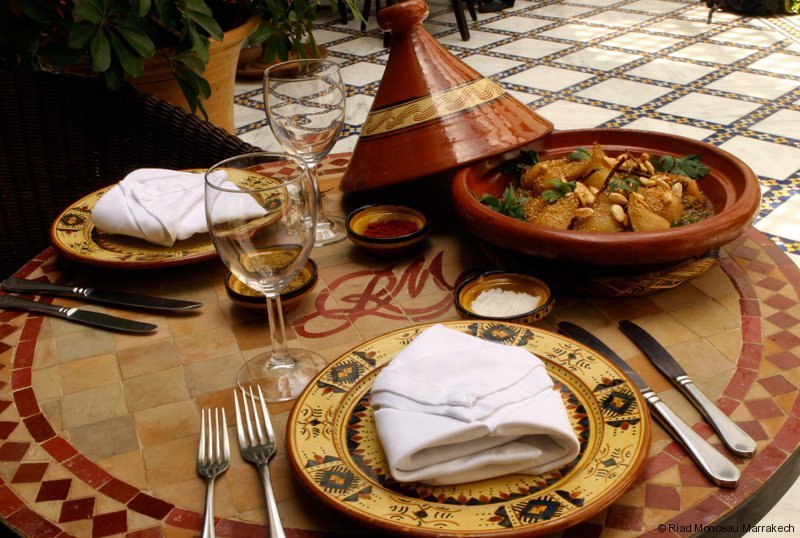 Tajine aux pruneaux et Baghrir «crêpes aux milles trous» Après le petit déjeuner, départ en direction d’un marché situé au coeur de la Médina pour faire les courses. Déjeuner en Riad. Après-midi libre jusqu’à 16h et ensuite rendez-vous en cuisine pour la préparation d’un tajine aux pruneaux.